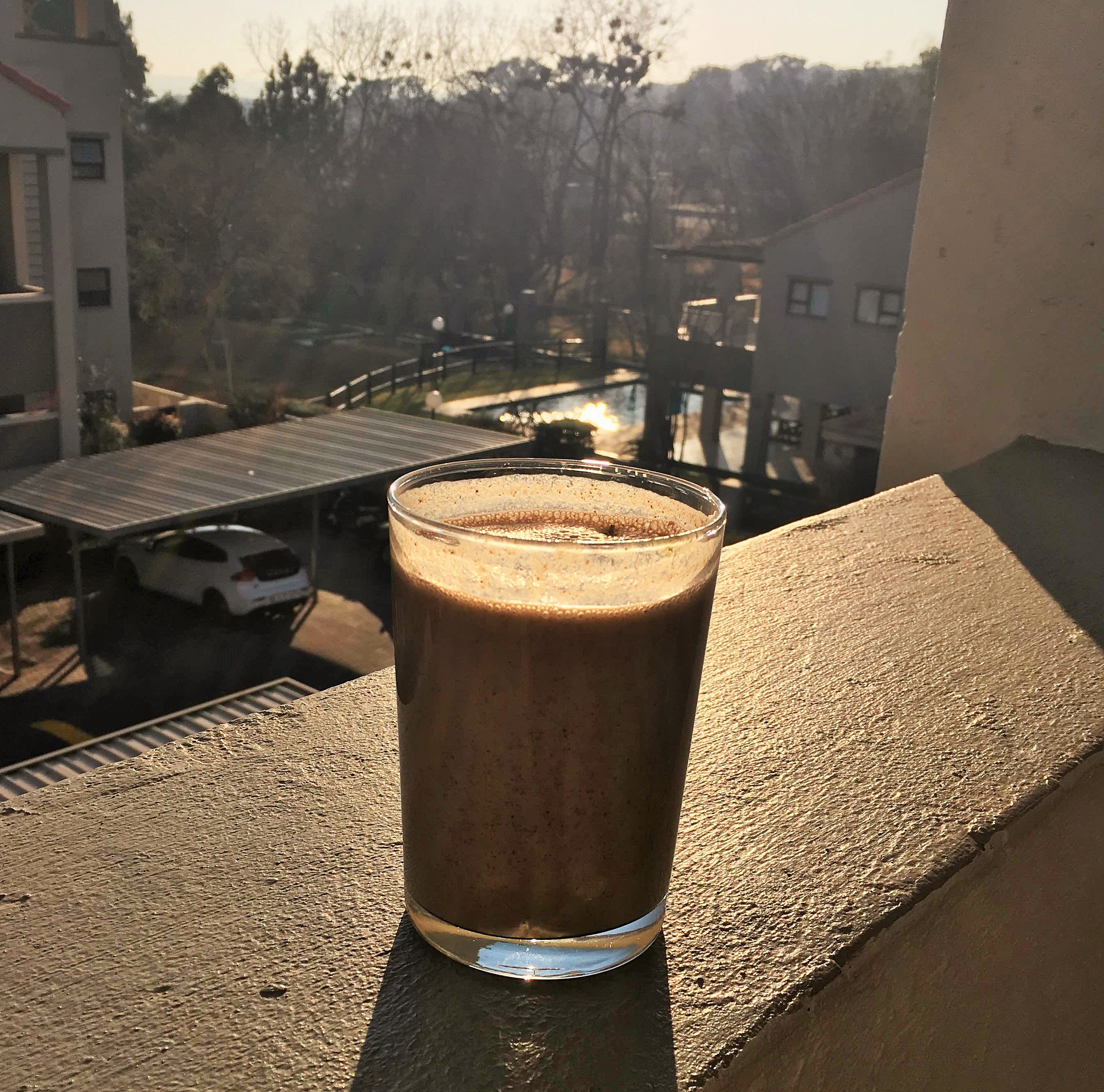 I felt like chocolate, so I made myself a small chocolate smoothie at home because I thought I deserved it.