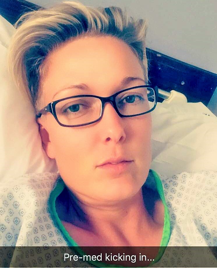 19h50: Eventually I was taken into theatre. They found a vein in my hand and put the drip up and knocked me out.